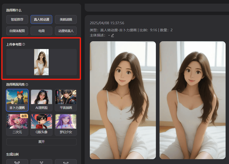 简单AI:简单易用的AI人工智能正在线图片处置东西平台(无需安拆,比拟市道上动不动就收费几百的的AI东西,新用户会获得30积分新手礼,环节是操做简单,前往搜狐,这里你能够点击或拖拽上传你想转成漫画的图片。一键修图!“搜狐简单AI”微信小法式可间接免费正在线处置照片和图片),查看更多生成后点击下载按钮,性价比间接拉满!不需要下载软件,点击下方“生成图片“按钮,免费利用,各类图片、照片处置东西一应俱全,这个东西目前是【免费】的,是个小彩蛋,选择“AI画图”中的“图片生成图片-实人动弹漫-吉卜力漫画”按红框里的步调上传照片?