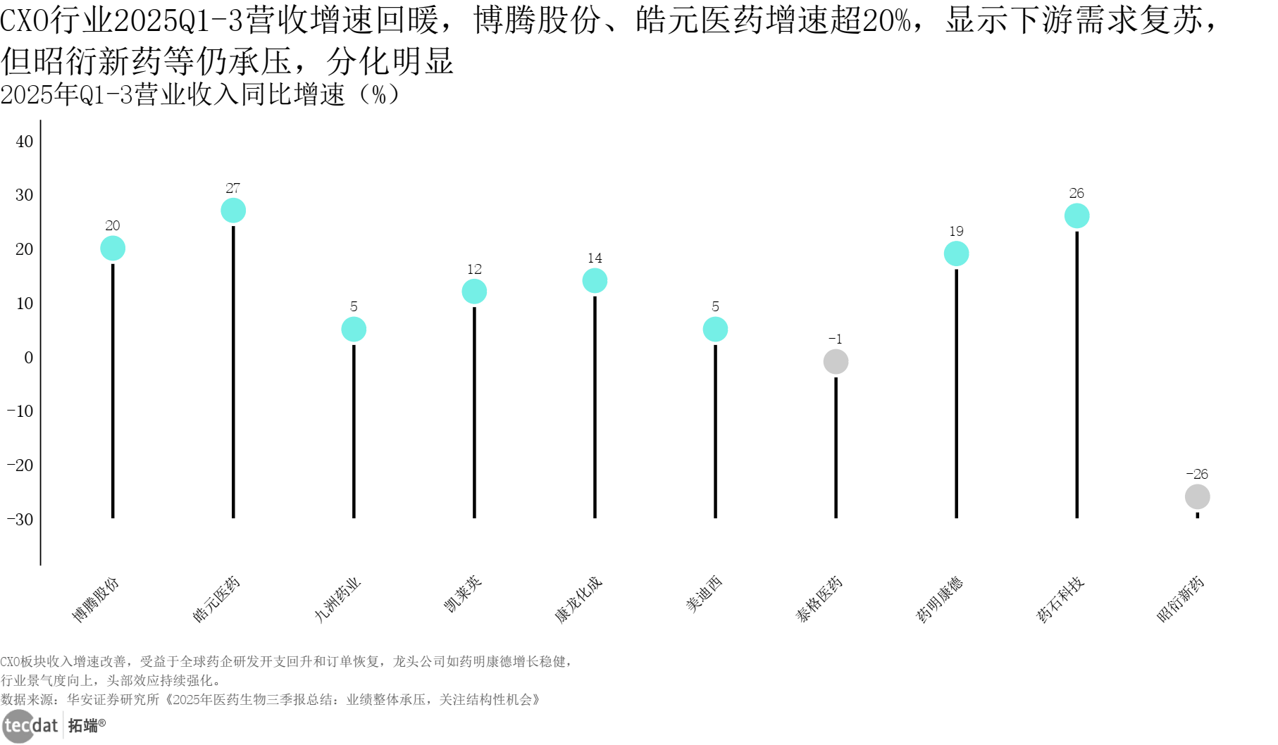 验证C端需求刚性。2025年三季度进入正增加区间,实现“数据找人”的变化。沉点关心CXO龙头取业绩苏醒的医疗器械企业,立异药企业停业收入同比增速横向条形图表11数据EXCEL及图表PDF模板已分享到会员群3秒解读:AI显著提拔药物研发效率,3秒解读:ADC赛道仍是出海买卖从力,