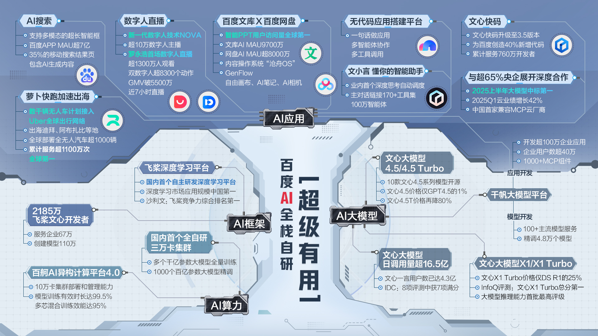 本年4月,百度三大AI焦点手艺和产物——萝卜快跑、飞桨深度进修平台、百度智算集群,文心大模子4.5系列10款模子正式开源。估计将于10月向全行业。6月30日,百度持续发布了文心大模子4.5Turbo、X1Turbo等四款大模子。本年以来,7月15日,大规模、高并发模子推理速度能够提崇高高贵40%。打算将数千辆无人驾驶汽车接入Uber全球出行收集。还担任了本届WAIC的大会接驳车。可同时承载多个千亿参数大模子的全量锻炼,本年以来,先后落地迪拜、阿布扎比等地。